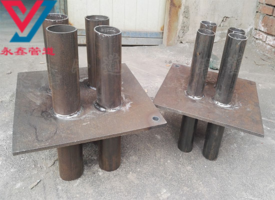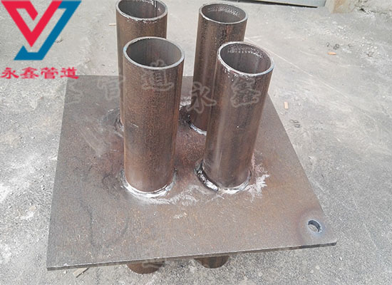 新永鑫管道设备有限公司 07FD02密闭肋穿墙套管也属于一种主要用于保护管道系统正常运行起作用的设备装置,产品主要是由一块钢板和n条钢管组成的,其制作材质主要是:Q235碳钢,碳钢也叫碳素钢,指含碳量Wc小于2.11百分之一百的铁碳合金。碳钢除含碳外一般还含有少量的硅、锰、硫、磷。主要是在地下室电气管道通过或进入人防室时,人防施工要求电气管道在分界处焊接密闭肋,起防爆作用。再就是进出地下室外墙电气管道,要么加装防水套管,电气管道穿套管进入地下室,要么在进入地下室的电气管道穿剪力墙处焊防水翼环,起防水作用。但是,以上二种情况的前提是,电气管道需要是钢管。定额中确实是没有套用子目,看看是否套用法兰焊接,定额材料换算处理。