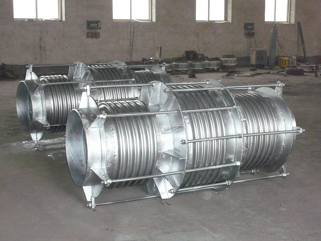 直管压力平衡波纹补偿器能通过自身结构使内压产生的推力保持平衡,而不作用或很少作用于相连设备,且能保持本身的位移补偿功能。 在组合电器中经常使用直管压力平衡波纹补偿器,它不仅能补偿设备连接中的轴向、径向位移还能平衡由波纹补偿器内压产生的推力,减少对连接设备或管道的影响。直管压力平衡波纹补偿器平衡内压产生推力的关键是平衡波纹管的有效面积需要是工作波纹管有效面积的两倍,这样工作波纹管内压引起的向外侧的轴向推力通过平衡拉杆被平衡波纹管因内压引起的相反方向的推力所抵消,而无轴向推力输出,管道或设备不再受力。 BZYP型直管压力平衡波纹补偿器的两端各有一个工作波纹管,中间有一个平衡波纹管,膨胀节通过受力构件(大拉杆或舌管)来承受内压推力,因此管系只需中间固定支架。此类膨胀节只能吸收轴向位移。